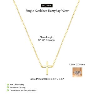 4. MYJEWR Layered Cross Necklace for Women – 14K Gold Plated Minimalist Faith Pendant with Cubic Zirconia